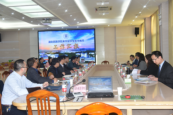27日上午,学校在行政楼三号会议室举行汇报会,副校长邓磊致欢迎辞并介绍了学校概况和医学留学生教育基本情况。专家组组长樊立洁教授就此次调研的目的、性质和具体工作安排等情况作了说明。随后专家组一行听取了国际交流合作处副处长罗永健所做的专题汇报。学校党办院办、学工处、教务处、保卫处、医学院、临床医学院、国际教育学院等部门负责人和教师代表参加了汇报会。