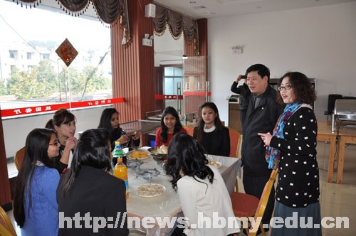 本网讯(通讯员张建华)2015年2月12日农历腊月24中午12点,36365官网在教工食堂二楼举办留学生2015年春节茶话会和团年活动。在校留学生和教师欢聚一堂共贺中国羊年新春。副校长汪兴平,国际教育学院院长覃敏,国际交流合作处副处长罗永健,医学院副院长郭有锋,附属民大医院副院长张银高和国际教育学院全体教师和部分在校任课教师一同参加了团年活动。