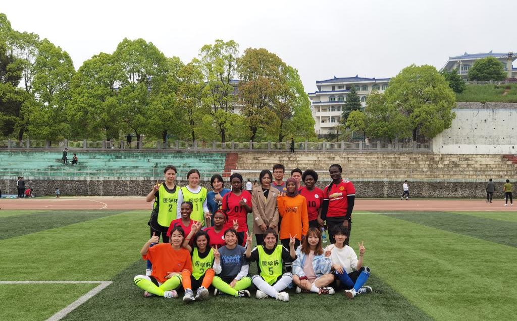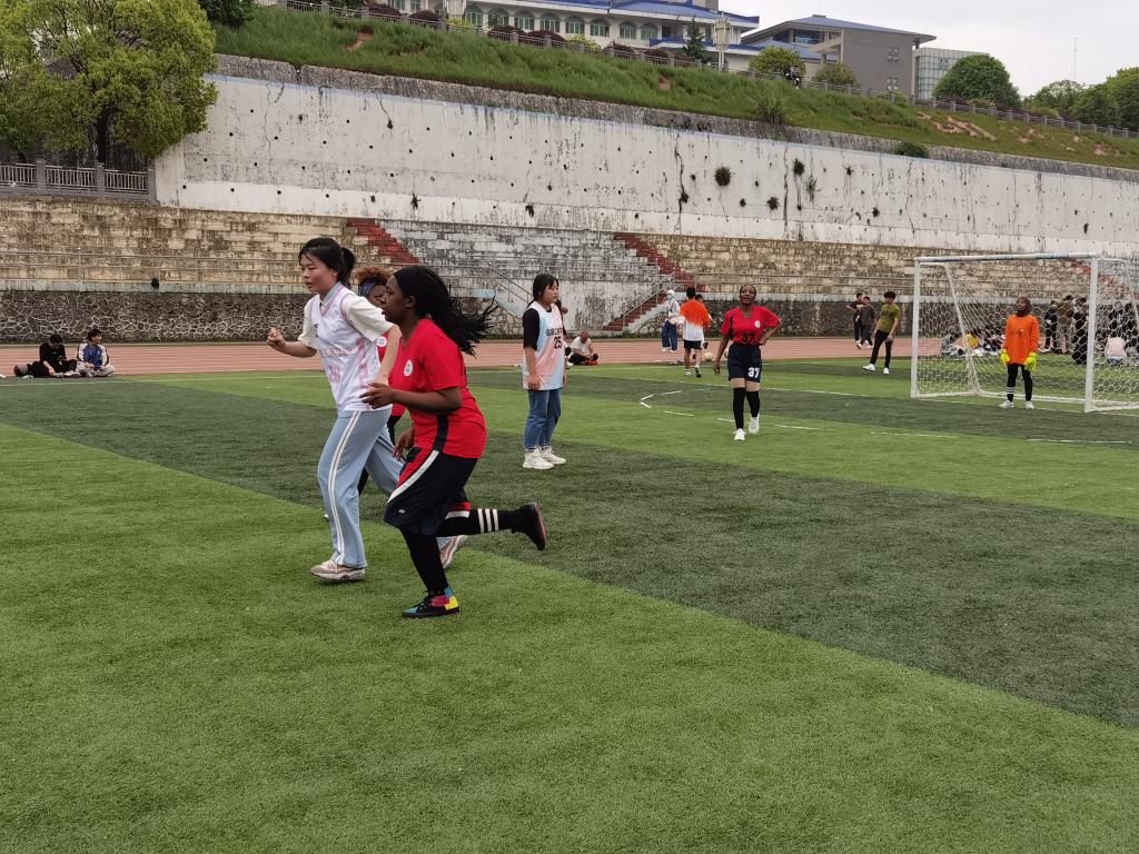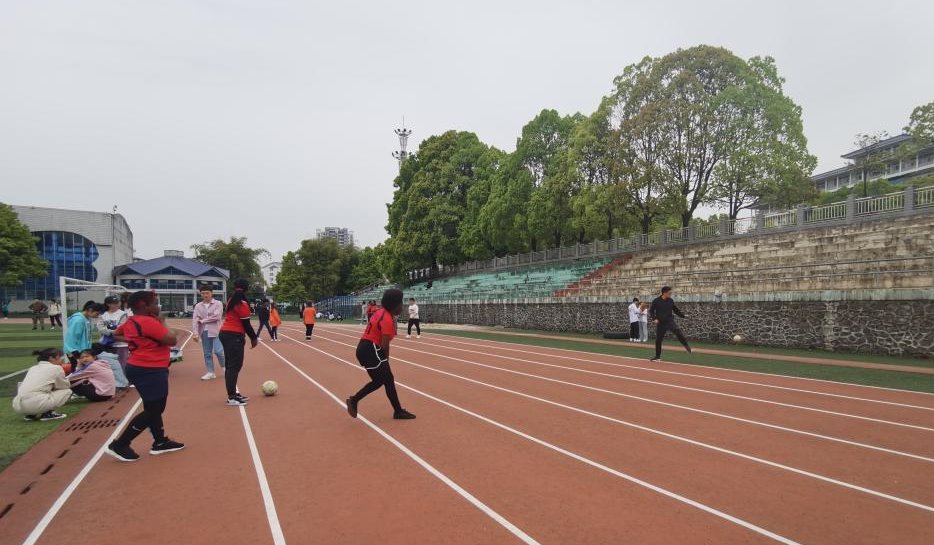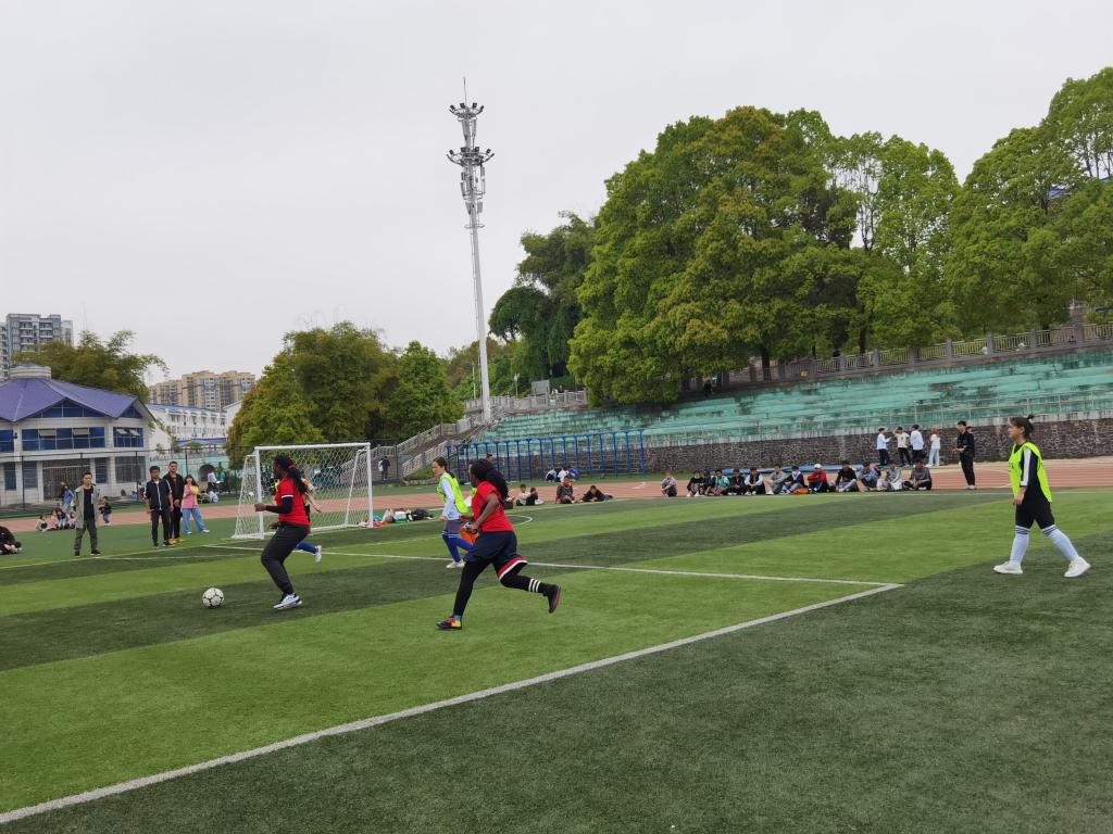 4月17日,国际教育学院留学生参加36365官网2021年女子足球比赛。