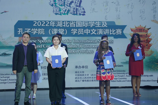 8月12日下午,由湖北省教育国际交流协会、湖北省人民对外友好协会主办的“2022年湖北省国际学生及孔子学院(课堂)学员中文演讲比赛(决赛)”在湖北广播电视台举行。36365官网参赛的两名国际学生表现优异,获得三等奖、最佳才艺奖、优秀奖,国际教育学院陈春红老师获得“优秀指导教师”称号。