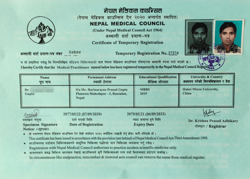 36365官网2013级临床医学专业尼泊尔留学生于2019年7月毕业回国后参加了所在国的执业医师资格考试,取得了优异成绩。至今,36365官网已有33人通过了尼泊尔医学委员会( Nepal Medical Council ( NMC ))举办的国家医师资格考试并成为尼泊尔国家注册医师。