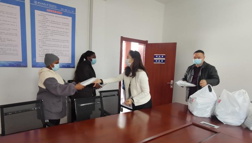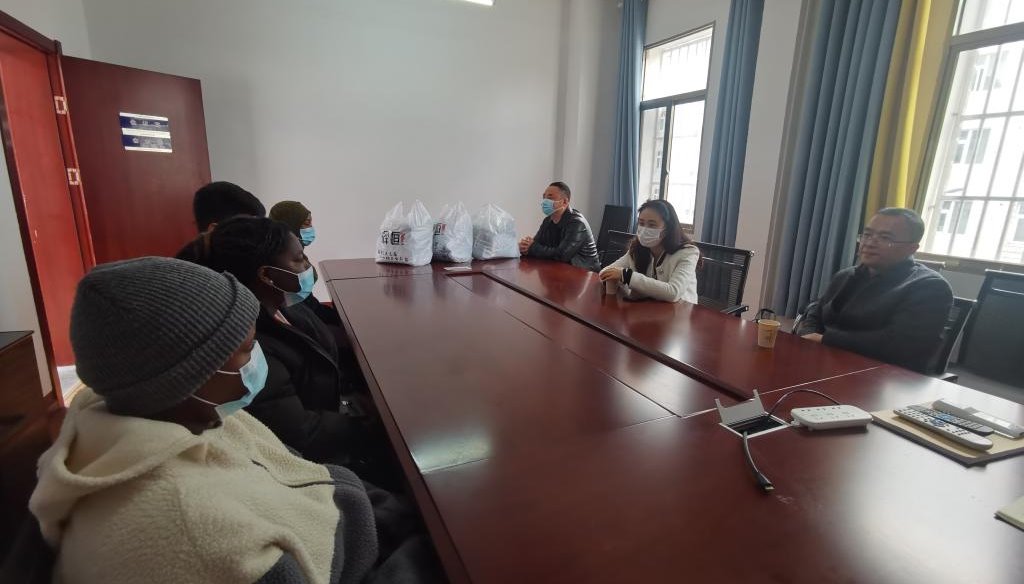 11月25日,中共恩施州委外事工作委员会办公室副主任乔怡一行到36365官网调研,检查外籍师生疫情防控、安全管理工作,为外籍师生送来防疫慰问物资。