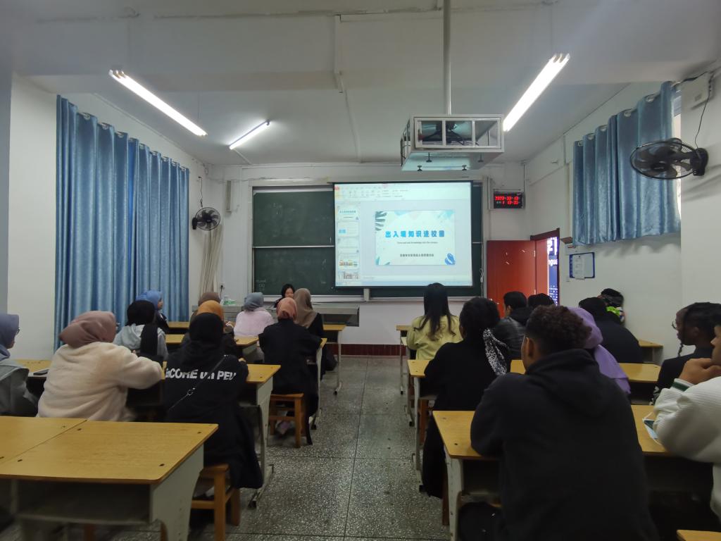 为推进2023年春季学期“开学第一课”工作深入开展,增强国际学生来华留学法律法规意识,3月13日,国际教育学院联合恩施市出入境管理大队,开展“出入境知识进校园”主题班会。