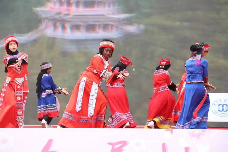 3月25日,学校国际教育学院留学生受邀赴宜昌市参加三峡大学第九届“桃花文化节”,与三峡大学及湖北省其他高校70余名留学生代表展开现场交流,并在开幕式上表演了精彩的土家摆手舞。
