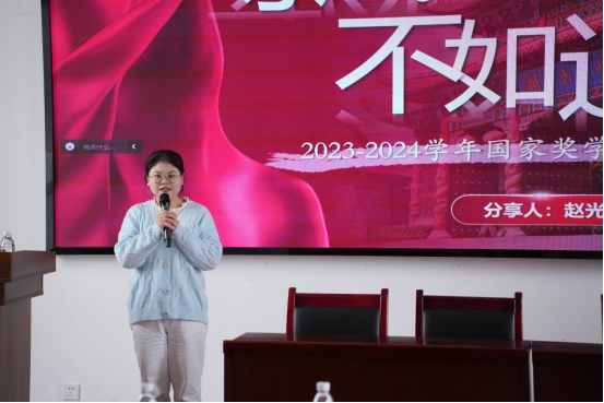 在分享会上,马克思主义学院的赵光荣同学从专业学习、个人成长、社会实践、学生工作等方面进行了经验分享,并鼓励同学们从学习成绩、科研竞赛、技能扩展等方面找到适合自己的学习方法,以实践促真知,持之以恒追求卓越。教师教育学院的王佳雯同学则从学和做的角度出发,分享了广学、多学、争做、勇做的个人经验,并强调要以专业为中心,以擅长领域为抓手,既要实干也要明重点。