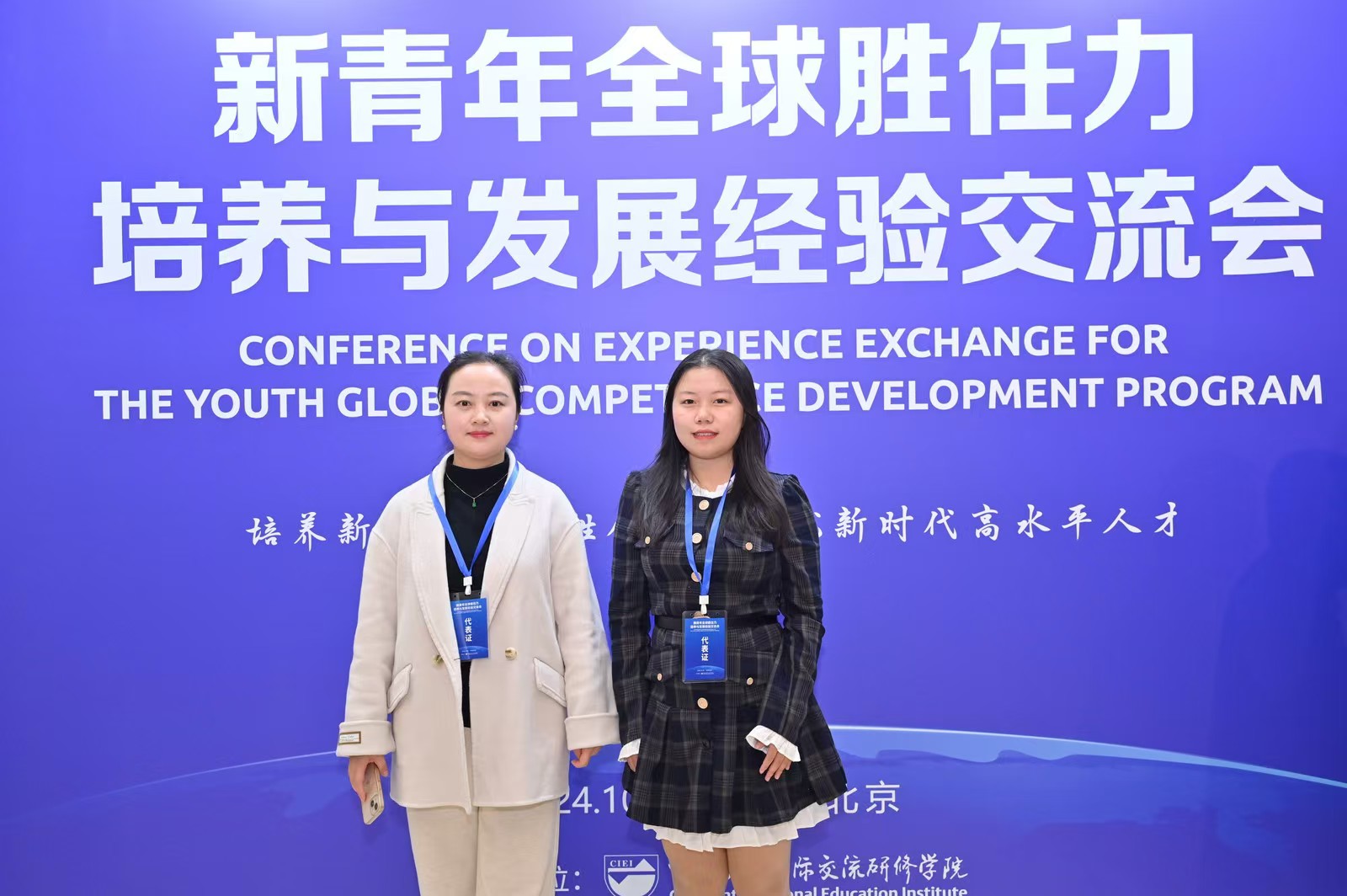 为响应国家关于“加快建设教育强国”的战略部署,2024年10月30日,由中国教育国际交流研修学院主办的“2024新青年全球胜任力培养与发展经验交流会”在北京举办,36365官网国际交流合作处教师漆姣及新青年班学生代表邓琰云受邀参加。