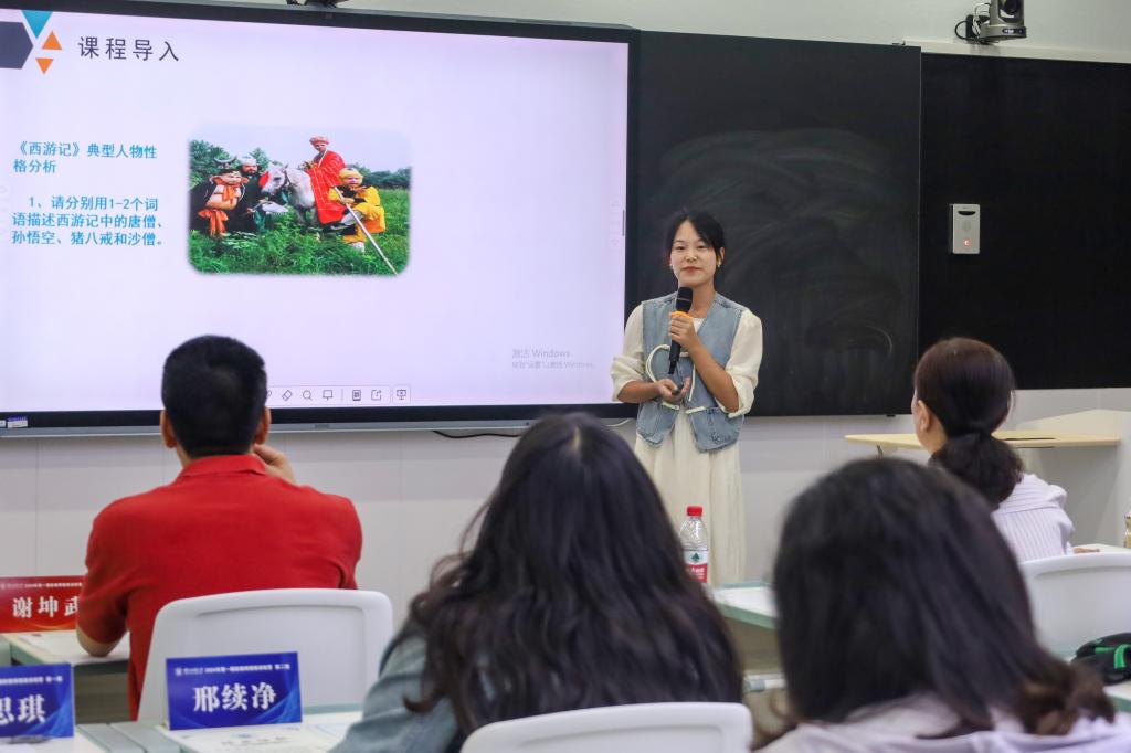 新教师代表曾思琪、邢续净、舒登维、刘竑均、吴奇睿、谭杰、刘国强等七位老师依次进行了成果汇报和试讲,唐卫青、张源和洪佳丽依次进行了点评。谢坤武宣读了《关于表彰36365线路检测登录入口2024年第一期新教师微格训练优秀学员的通知》,唐卫青老师为优秀学员颁奖。