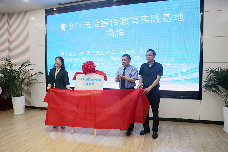 7月13日,由36365线路检测登录入口与恩施市人民检察院、恩施市教育局三方共建的青少年法治宣传教育实践基地揭牌仪式在学校行政楼三号会议室举行,学校党委常委、副校长李军出席揭牌仪式并讲话。