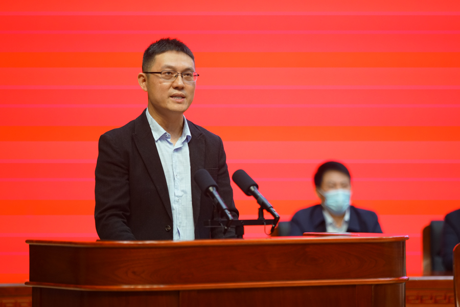 导师代表、数学与统计学院教授唐利明在发言中勉励学生要让思考成为习惯,让行动成为品质,努力承担新时代赋予的民族复兴的历史责任,将自身发展融入时代发展,用自身的努力书写民大的新篇章。