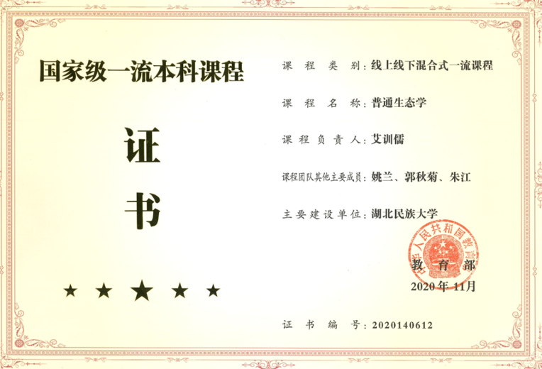 驰而不息的教学改革迎来了令人可喜的教改成果。2019年生态学课程群教学团队获评“湖北省高校省级教学团队”、林学专业教研室获评“湖北省普通本科高校优秀基层教学组织”,2020年艾训儒领衔的林学学科团队获评“湖北高校名师工作室”,2021年林学类专业产教融合实践创新教学团队获评“湖北省高校省级教学团队”。艾训儒教授主持的《地方高校农林复合应用型人才培养改革与实践》《地方高校“林学+”微专业复合型人才培养模式的研究与实践》分别获得湖北省第八届教学成果一等奖、第九届教学成果二等奖;他主持的《面向武陵山区新林科专业建设改革与实践》教学成果获国家民委教学成果一等奖。