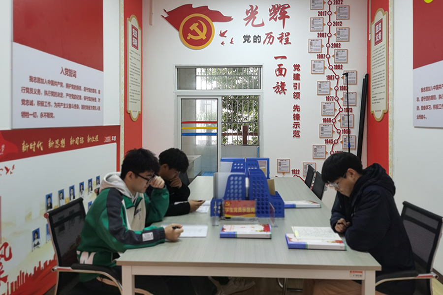 文化墙上,“党的光辉历程”以直观形象的时间轴的形式生动讲述着党史故事,环境育人的创新路径时刻激励着团学干部扎实奋斗,奉献青春。