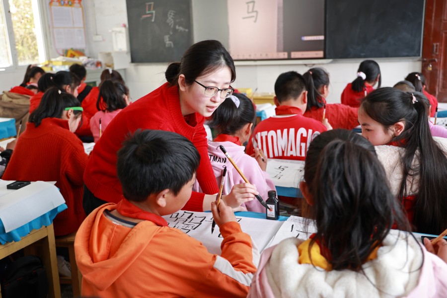 短短一个小时的课程中,两位老师寓教于乐、循序渐进,充分展现自身专业素养与教学经验,培养孩子们的自信与勇气,在潜移默化中提高乡村孩子的语言表达能力与毛笔书法能力。