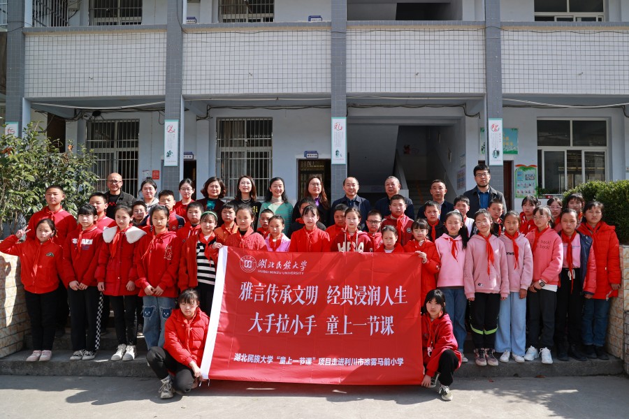 3月15日,学校党委常委、副校长李军带队前往利川市凉雾乡马前小学,为该校普通话推广基地揭牌并开展语言文字推广实践活动。