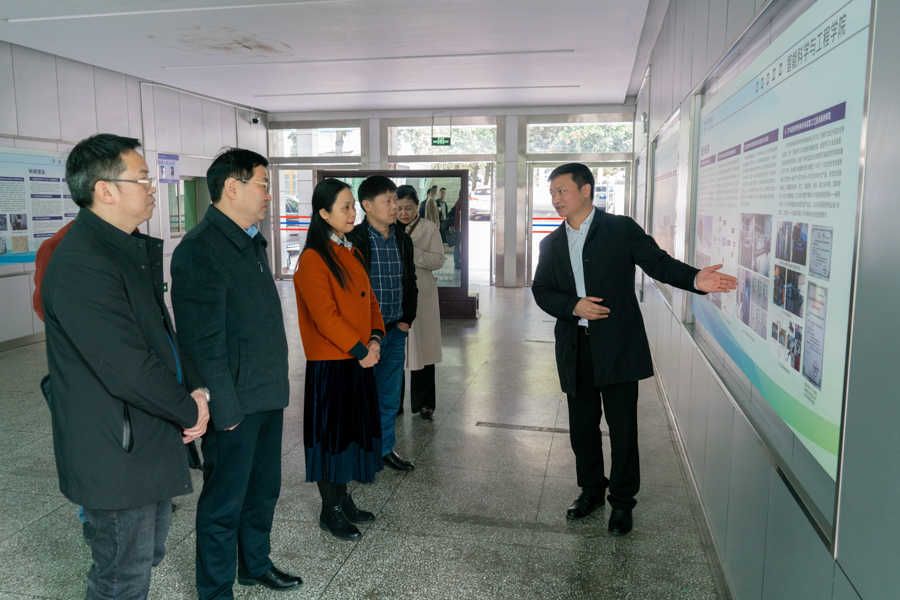 王赛玉(左三)在邓磊(左二)的陪同下参观智能科学与工程学院