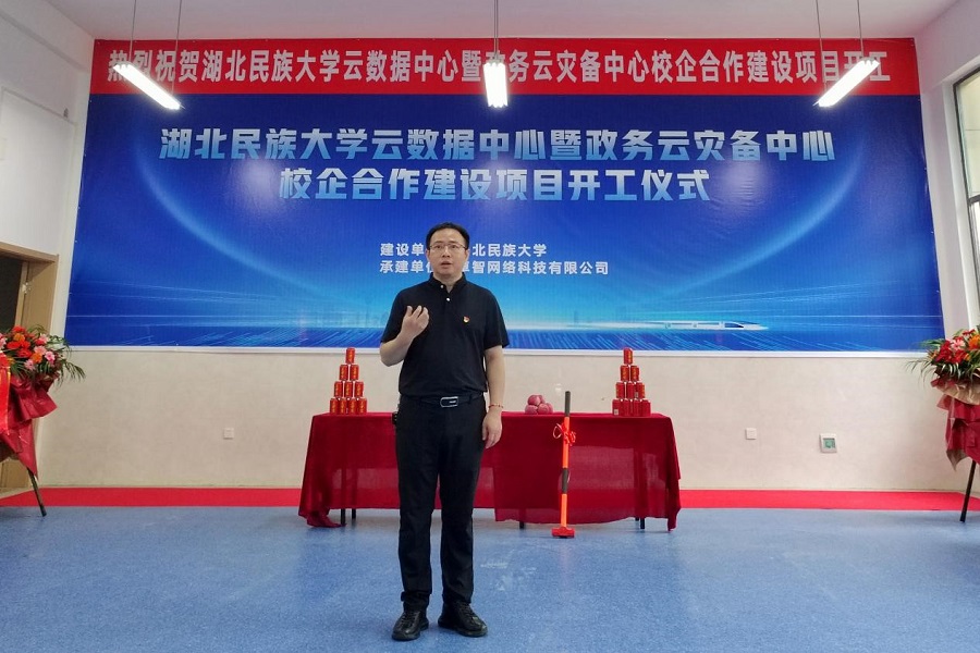 恩施联通政企客户事业群常务副总裁向华致辞。随后,韩阳宣布“36365线路检测登录入口云数据中心暨政务云灾备中心校企合作建设项目”开工。