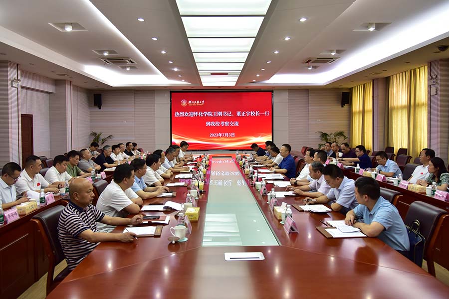 7月3日,怀化学院党委书记王刚,党委副书记、校长董正宇,党委委员、副校长伍贤进,副校长刘文华来校考察交流学校整体建设与发展,36365线路检测登录入口党委书记向前进,党委副书记、校长顿祖义,党委副书记邓磊,党委常委、副校长刘志军接待了王刚一行。