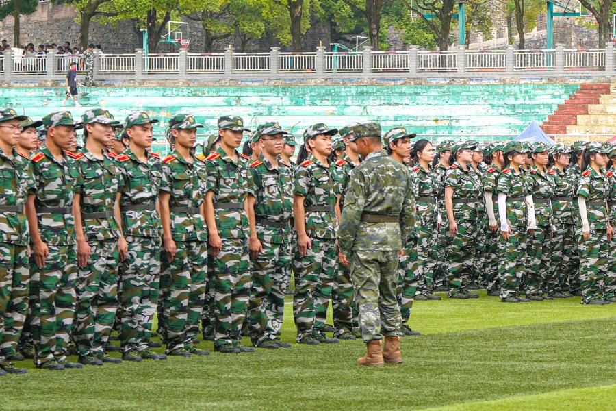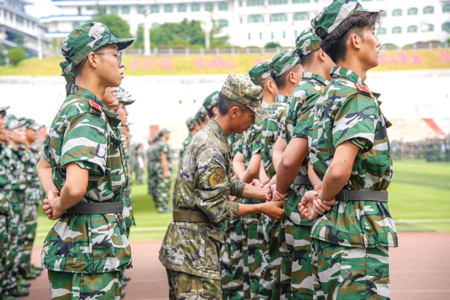 9月11日,2023级4594名本科新生正式迎来为期14天的军训。军训团下设4个营,以二级学院(部)为单位编设16连,整组编设60个排,分别在民族体育场、五环体育场进行军事训练。