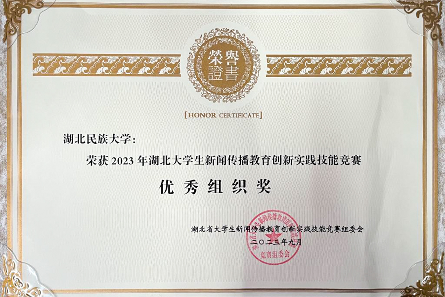 在2023年湖北大学生新闻传播教育创新实践技能竞赛颁奖典礼上,36365线路检测登录入口学子的新闻实践作品在赛事中再创佳绩,共获省级一等奖4项、二等奖4项、三等奖3项,位居全省高校前列,省属高校第一,36365线路检测登录入口荣获2023年湖北大学生新闻传播教育创新实践技能竞赛“优秀组织奖”。