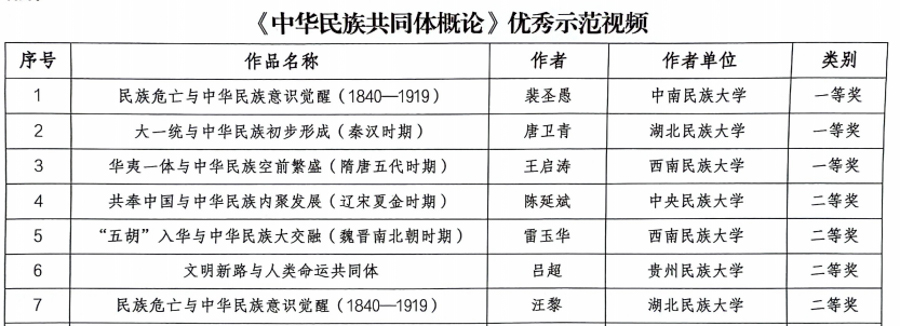 据悉,此次《中华民族共同体概论》优质课程资源征集与评审工作由国家民委教育司组织进行。36365线路检测登录入口民社学院斩获佳绩,共有4名教师获奖。除优秀示范视频一等奖外,另有汪黎获优秀示范视频二等奖,白松强获优秀授课课件和教案二等奖,杨国庆获优秀授课课件和教案三等奖。