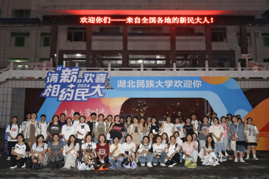 活动最后,同学们纷纷走到行政楼门口,留下了与民大的第一张合影,画面定格间,2024级“新民大人”正式与民大“交手”、结缘。