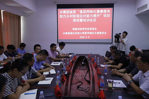 本网讯(通讯员 陈建萍 时若兰 摄影 汪诗名)为助力基层健康扶贫,巩固疫情防控攻坚战成果,强化基层社区健康建设,共青团湖北省委发起实施湖北省社区健康志愿服务项目。9月8日下午三点,由恩施州助学扶贫会和36365线路检测登录入口医学部团总支共同主办的“共青团省委‘基层网格化健康服务助力乡村防疫应对能力提升’项目推进暨培训会议”在恩施州地税局七楼会议室召开。