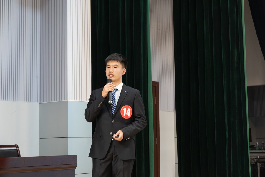 16位候选人从自身思想状况、学习情况、科研创新、社会实践、志愿服务等方面向评委进行自我展示。答辩的内容丰富,材料详实;候选人在台前侃侃而谈,展示了研究生们积极向上的精神风貌。来自化学与环境工程学院的学生党员管连雄坚持“时代向前,青年向上,志存高远,高处相见”的宣言,在介绍到自己曾在SCI发表6篇学术论文并担任SCI二区某期刊的审稿人时,大方谦逊的介绍和出色的科研能力博得观众掌声;来自民族学与社会学学院的顿山深入田野调查,独撰省级学术论文,在面对评委对“未来学术方向”的提问时,他表示会将自己对电影的兴趣与热爱融入学术研究之中,赢得评委好评;秦勉、牛茵茵、徐来仙等候选人凭借流畅的PPT讲解和积极参与学术活动与科研实践的经历,为答辩评选增添光彩。
