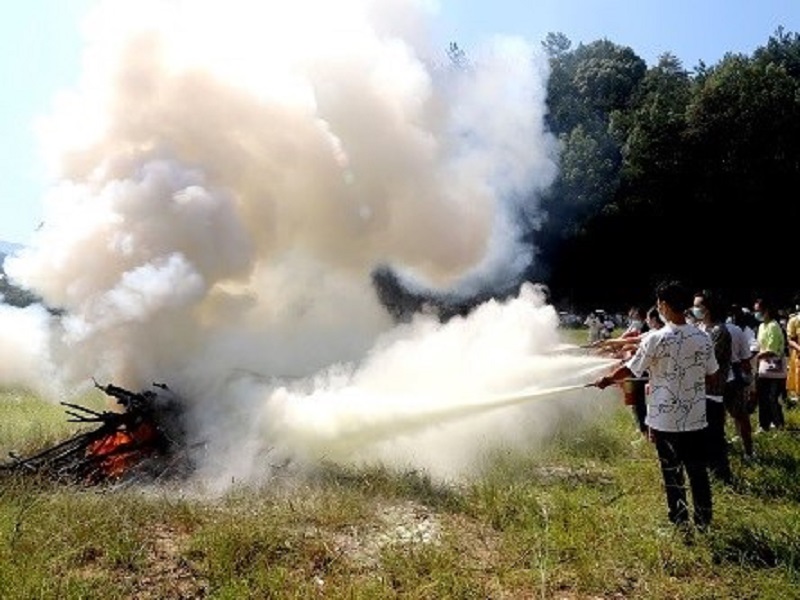 消防知识演习现场,校保卫处和州消防救援支队着重讲解了消防水带的连接、灭火器的使用方法,用高压水枪进行灭火演示,讲解和演示相结合,演绎生动。