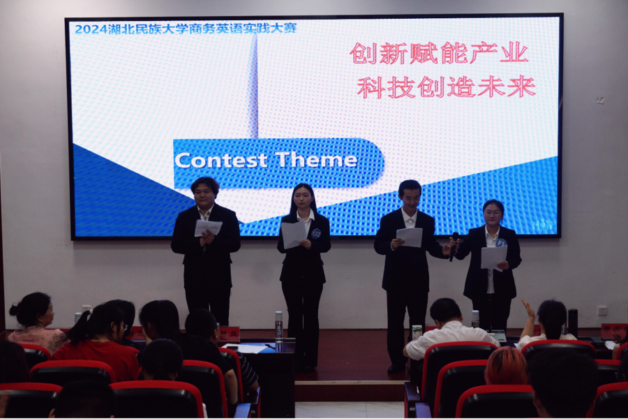 本次大赛以“科技赋能产业,创新引领未来”为主题,为学生提供了一个将理论应用于实践、全面提升商务沟通、团队协作、创新思维等能力的平台。比赛分为院级初赛和校级决赛两个阶段,参赛团队以第三者的角度对某家公司或企业在科技和创新方面进行调研和分析,然后写成商务实践调查报告,再以PPT和视频的方式用英语进行展示和讲介,结束之后回答评委老师的提问。