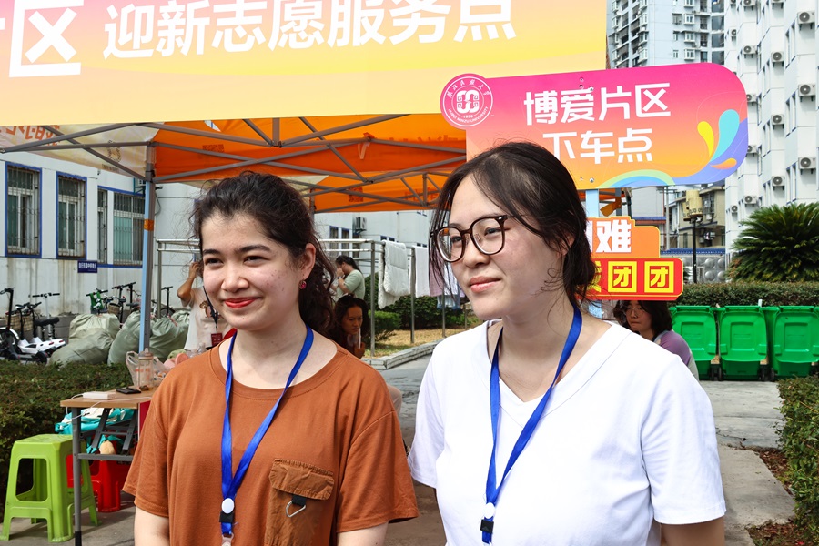 “作为一名志愿者,我们认真帮助遇到的每一位学生、家长,尽可能地让他们更快了解学校基本情况,以便更好安排接下来的事宜。” 医学部志愿者赵芙蓉、爱乐妮尕尔接受采访时分享到。