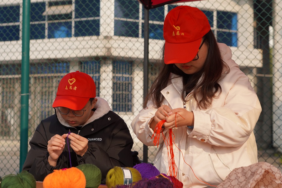 本网讯(见习记者 张百川 王玉然 通讯员 王欣怡)12月5日,文学与传媒学院总支部委员会社会实践与志愿者工作部在民族体育场举办“寒冬围巾暖人心,热忱红绳系我情”志愿活动。