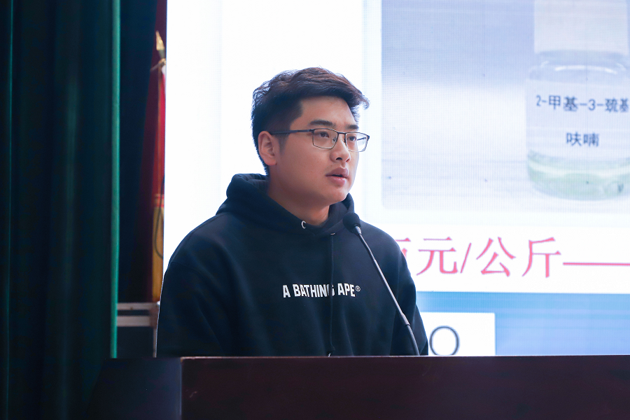 化学与环境工程学院研究生冯亮通过讲述自己在实验过程中改进烘箱的经历,鼓励学生应百折不挠、勇往直前。