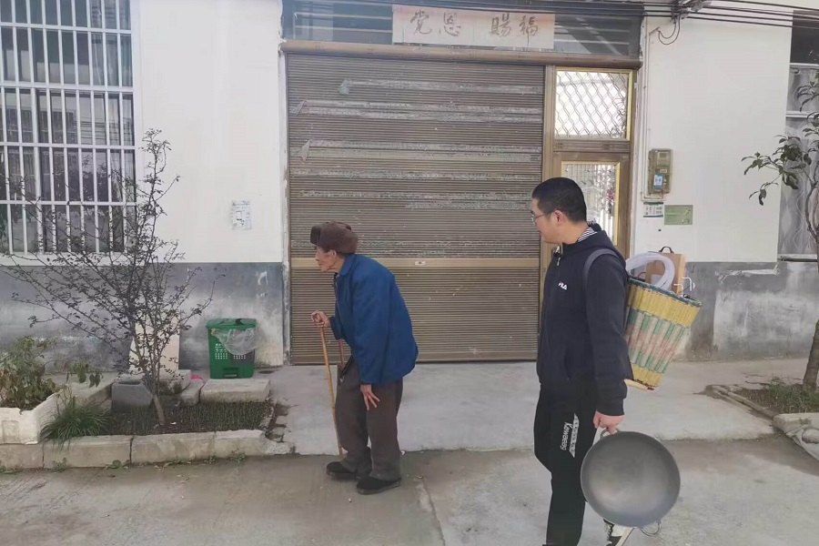 粟登平给抗美援朝老战士蒋年丰买生活用品