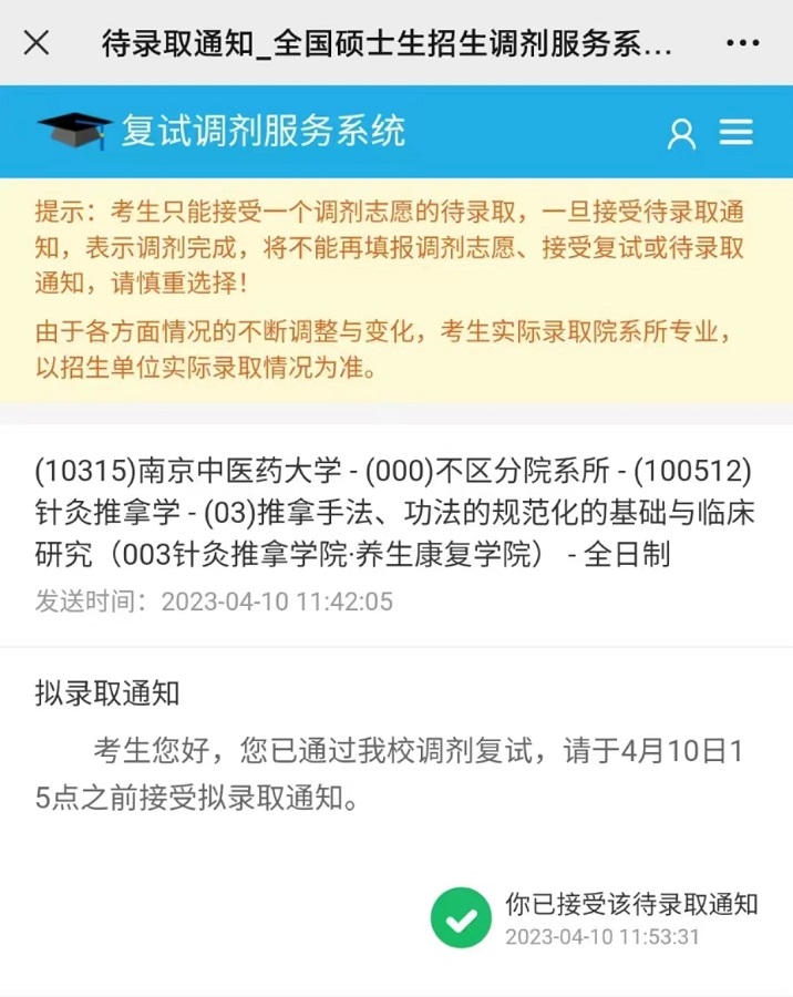 甘丽祯出生中医世家,但是一开始并没有选择中医学专业,而是报考的新闻学专业,在课程实践中她发现新闻学并不适合她,于是转专业来到中医学专业,“选择自己擅长且喜欢的事情很重要,如果没有,那一定要培养自己的可转移能力。”创业带给甘丽祯的,还有面对失败的勇气与坦然。“在去年考研的时候,我正好‘阳’了,考研也没有发挥出正常的水平,但是正是大学这样的一些创业经历,使我能够坦然面对考研调剂,让我的未来有更多的选择。”甘丽祯目前已被南京中医药大学录取。