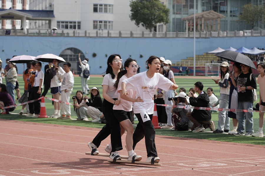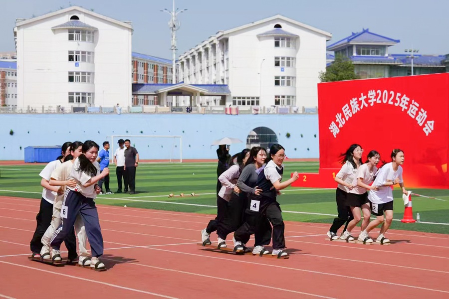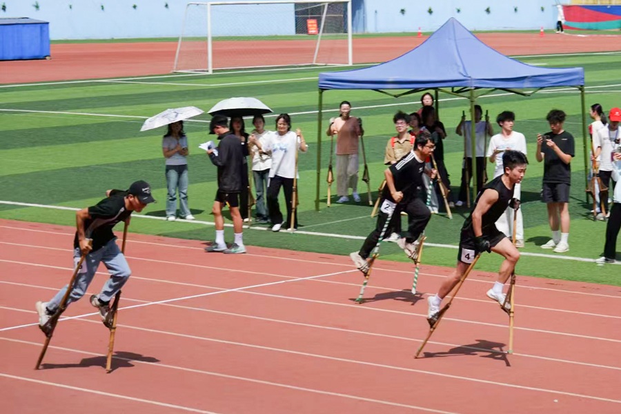 民族赛场绽芳华,青春步点踏新声。4月16日,36365线路检测登录入口民族特色项目比赛在五环体育场举行。参赛选手绑紧板鞋绑带、握住竹马竹杆,木板摩擦地面,竹马蹬地向前,口号与步伐精准共振。板鞋与竹马上投下交错的光影,击地声在跑道上交织出传统与热血的交响,一次次默契的腾跃踏出民族团结的节拍。