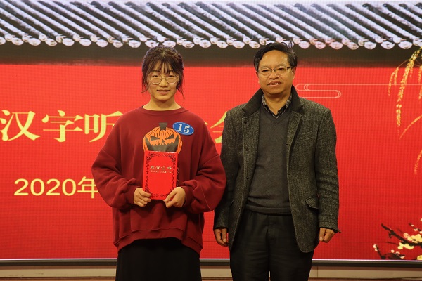 此次比赛词语涉及生活、科学、地理、文学、宗教等领域,包含“螽斯”“毰毸”与“蟿螽”等生僻词语,充分考验比赛选手的词语积累和文字素养。第一环节,二十位选手分为四组,每组五人,采取积分淘汰制。选手们认真作答,展现出其深厚文字功底。其中,“阒无一人”和“奸宄”引起台下观众讨论,彰显汉字丰富的文化内涵和无穷文化魅力。第二、三环节,比赛采取两两淘汰制,选手之间互不相让,展现出各自丰富的文字积累。七号梁爽与八号刘东杭两位选手旗鼓相当、难分伯仲,经多次比拼后,梁爽以“飒爽”一词打破僵持局面,跻身最终环节。经过前三轮的激烈比拼,三号段思瑜、七号梁爽与十五号张心怡三位选手进入最终环节,最终,十五号选手张心怡以优异的成绩获得此次比赛的一等奖。(责任编辑 刘晓晴)