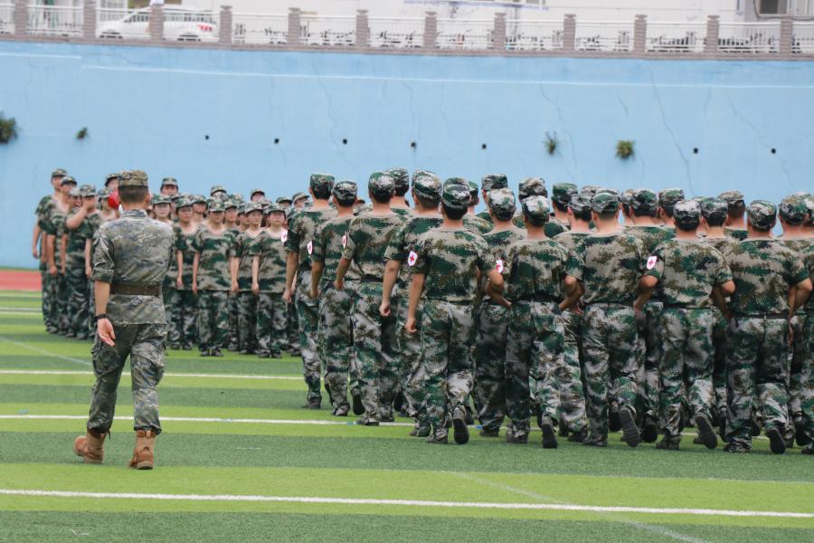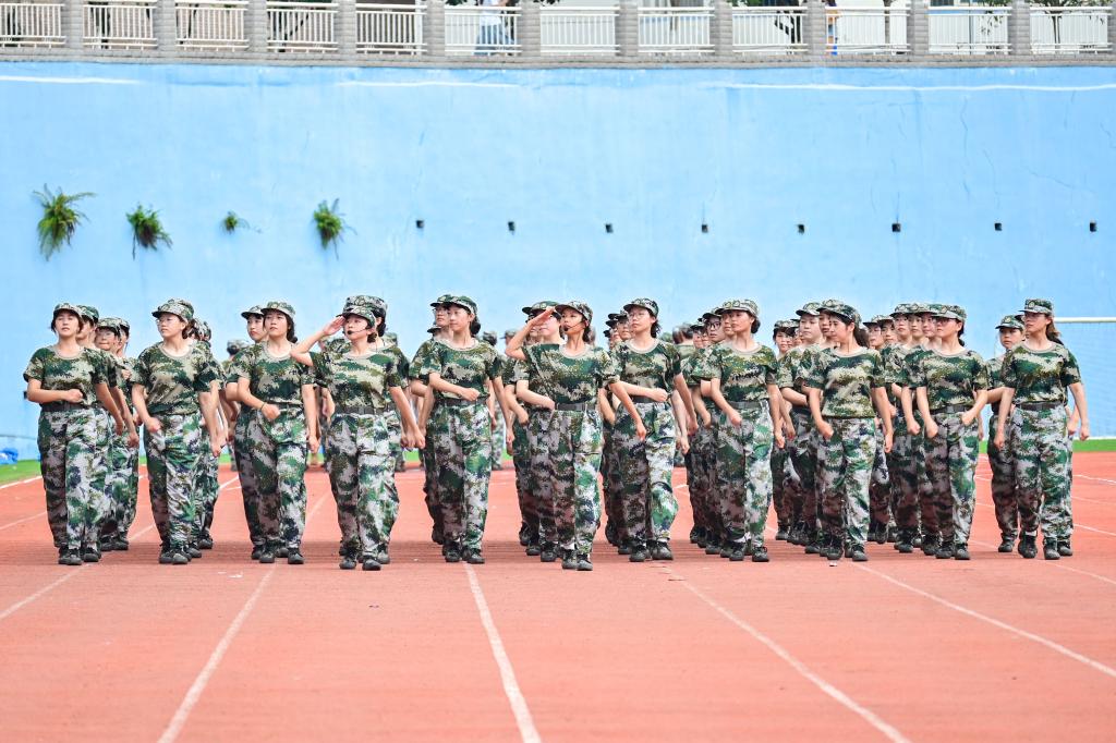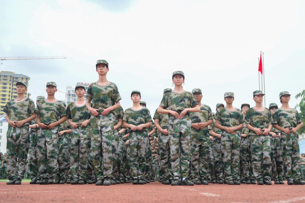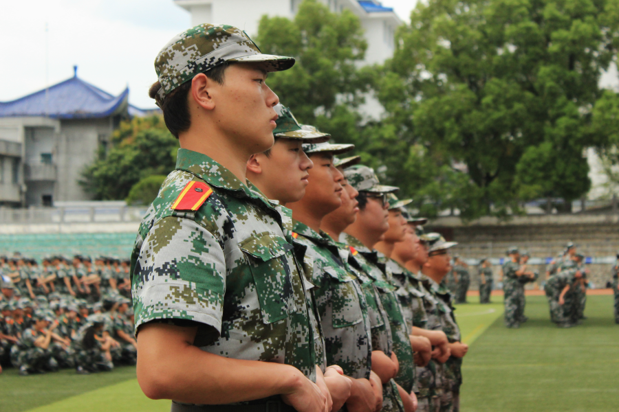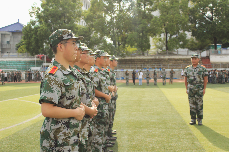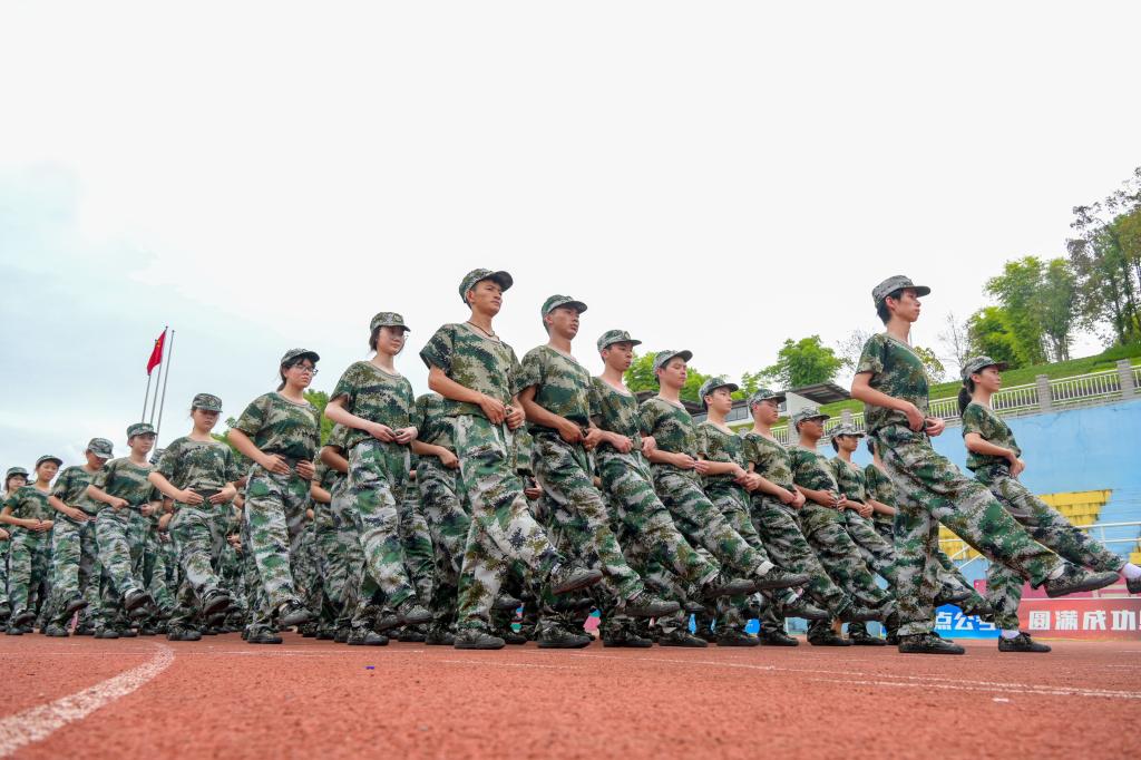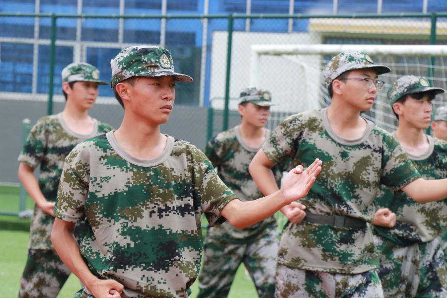 军训正浓时,场阔练姿勤。参训学子身着制式戎装,身姿挺拔如松,意气风发入场。基础队列训练中,教官示范动作标准有力,逐排巡视时严纠摆臂高低、步幅长短;学子们顶烈日咬牙坚持,零散的动作渐趋齐整,每一次抬手、每一步落脚都透着少年的坚毅,训练场处处激荡着青春的朝气与拼搏的力量。