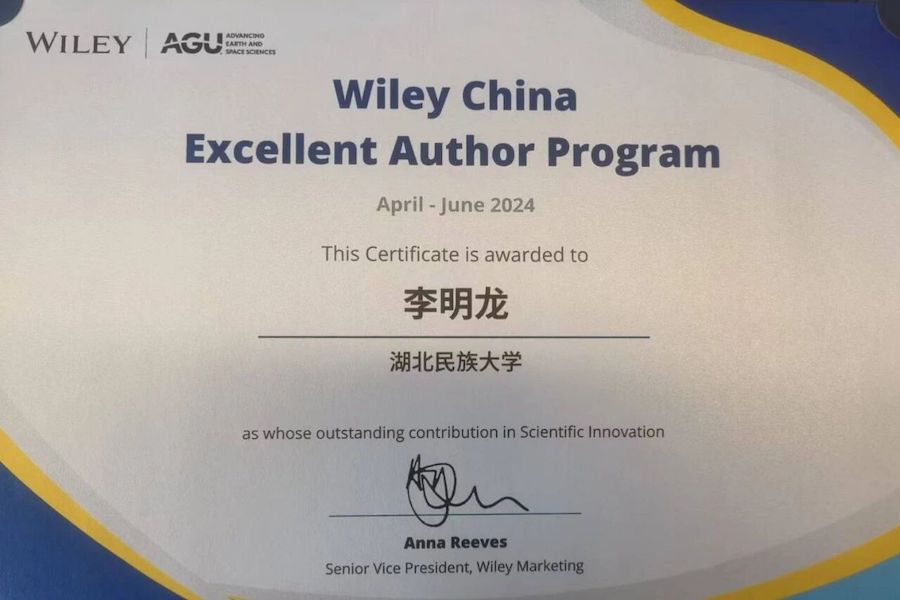 李明龙入选高层次科技创新人才工程获得Wiley威立中国高贡献作者奖