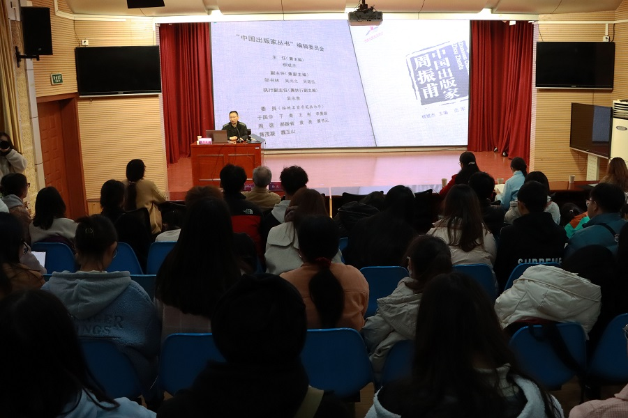 讲座伊始,吴永贵以幽默风趣的语言向学生详细介绍自己主持的三套大型丛书——《中国出版家丛书》《中国红色出版史料丛刊》《中国共产党抗日根据地解放区书目史料丛刊》的艰难创作过程。叙述过程中,他提到,编辑最大的资源就是人际圈,编辑在编辑文章时应注意体现出时代和出版的关系,紧扣主轴,将核心充分展现出来。同时,他表示与党相关的系列书籍具有逻辑性和系统化的特性,红色刊物的创作要以历史事实为根基,以真实的笔触反映历史面貌,不能泛泛而谈,脱离实际。此外,他建议学生在创作时要写明刊目提要,体悟出刊目中的美,注意话语表达方式与逻辑性,写出与时代相呼应的书籍。