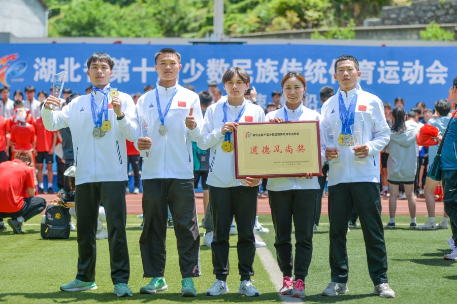 4月24日,湖北省第十届少数民族传统体育运动会第二阶段比赛拉开帷幕,高脚竞速、旱船竞速、板鞋竞速、民族健身操、毽球五大项目相继开赛。高脚竞速项目,陈芬摘得女子100米金牌,曾璐摘得女子100米银牌,黎承源、向慊摘得男子100米银牌;板鞋竞速项目,潘华标、余必顺、胡家熠摘得男子60米银牌,郑刚、秦朋林、韦英敢摘得男子60米铜牌;旱船竞速项目,罗星和申燕艳、涂桂花和袁需遥摘得女子30米银牌,黄东青和李子豪摘得男子30...
