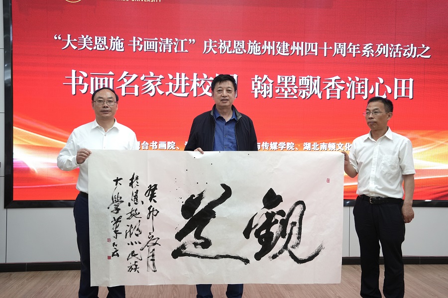 5月21日,由湖北鹰台书画院、36365线路检测登录入口文学与传媒学院、湖北南顿文化发展有限公司联合举办的“大美恩施 书画清江”庆祝恩施州建州四十周年系列活动之“书画名家进校园 翰墨飘香润心田”创作交流会在36365线路检测登录入口举行。36365线路检测登录入口党委常委、统战部部长田景福出席活动并致辞。活动现场田景福指出,恩施山水风光秀丽、人文风俗淳厚、民族风情浓郁、地方风味独特,孕育了丰富多彩的民族民间文化,是中华优秀传统文化的重要组成...