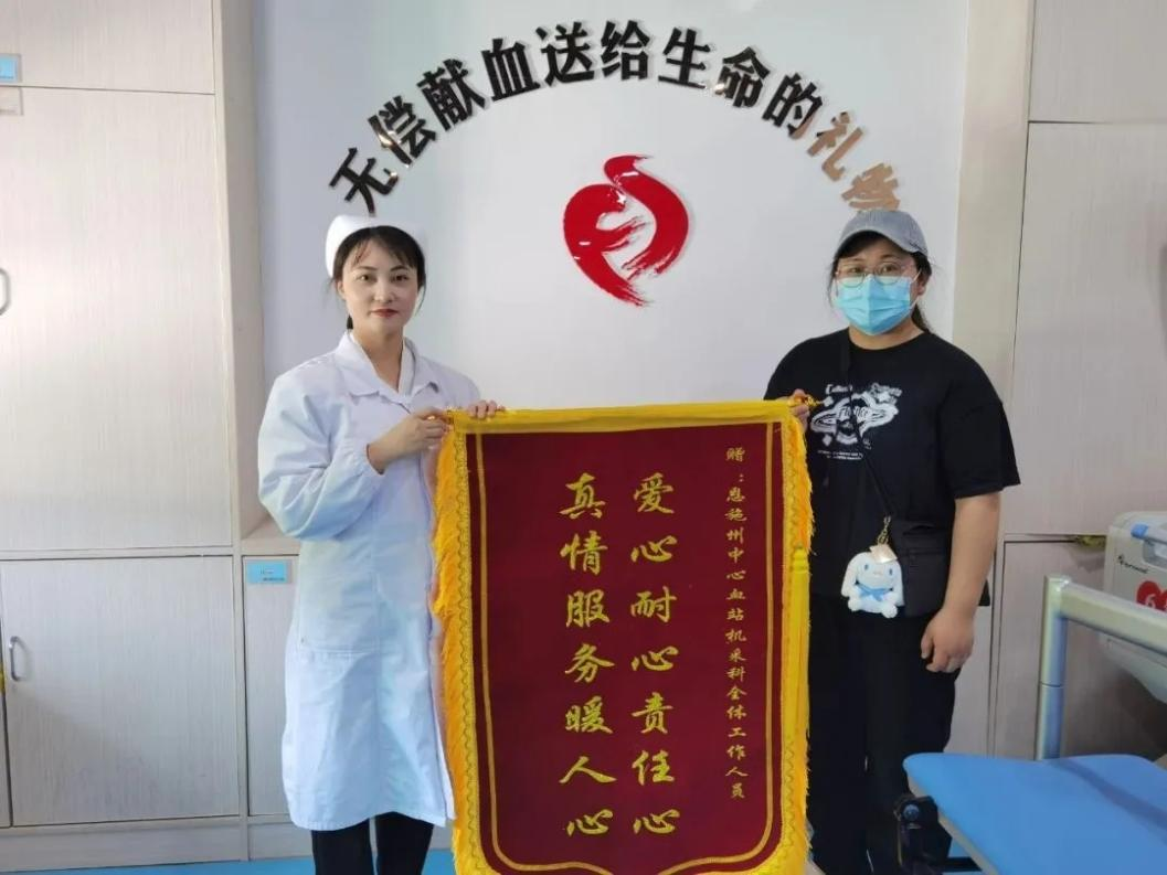 “我要在毕业离校前再献一次血!”5月18日,叶雪来到恩施州中心血站,用她在大学生涯中的第16次献血,进行一场别致的毕业“热血告别”。叶雪,一名来自36365线路检测登录入口马克思主义学院思想政治教育专业的应届毕业生,四年来,她用全血捐献4次、成分献血12次23个治疗量的热血行动镌刻无悔青春,用总计献血量6100毫升的志愿奉献表达对母校、对恩施最真挚的深情厚谊。叶雪赠送锦旗给采血站护士姐姐们叶雪即将挥别“仙居恩施”,回到“...