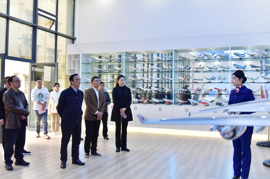 11月14日,党委书记向前进,党委常委、宣传部长、总会计师余来,党委常委、统战部长田景福到音乐舞蹈学院参加航空服务艺术与管理专业实践教学教研活动。向前进一行深入教学一线调研观摩,在航空服务艺术与管理实训中心模拟教学舱沉浸式体验了起飞前安全演示、模拟巡航、紧急迫降等实操环节,听取了老师们的教学点评及交流探讨。向前进(前排左二)一行参观飞机模型安全演示向前进对教研活动给予充分肯定。他指出,航艺专业是学...