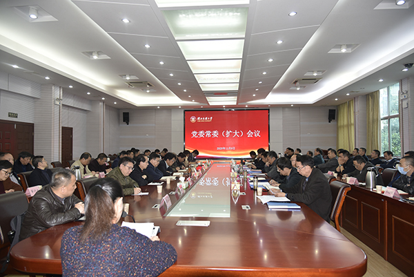 会议现场本网讯 11月9日,学校在行政楼3号会议室召开党委常委(扩大)会议,认真传达学习贯彻党的十九届五中全会精神和10月30日召开的湖北省委常委会扩大会议精神。党委书记吴建清主持会议。学校领导、党委委员、校属各单位正处级干部参加会议。会议指出,党的十九届五中全会是我们党站在“两个一百年”奋斗目标的历史交汇点,面对世界百年未有之大变局、疫情防控取得重大战略成果的大背景下召开的一次十分重要的会议,是我们党...