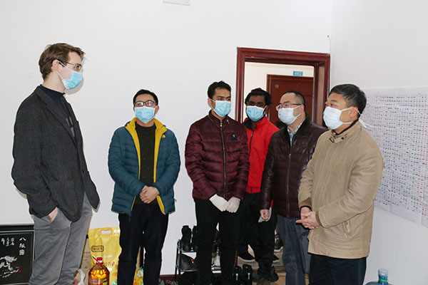 顿祖义查看留学生寝室 顿祖义查看外教老师宿舍 本网讯 2月3日下午,校长顿祖义带领学校后勤集团、国际教育学院的负责人及部分老师走访慰问寒假留校的留学生和外籍教师,并指导新型冠状病毒引起的肺炎疫情防控工作。 走访中,顿祖义仔细询问留学生和外教在疫情防控期间的学习、生活和自我防护情况,叮嘱大家客观、理性地看待疫情,要做好科学防护,尽量减少外出,保持身心健康,配合学校做好疫情防控工作。 ...