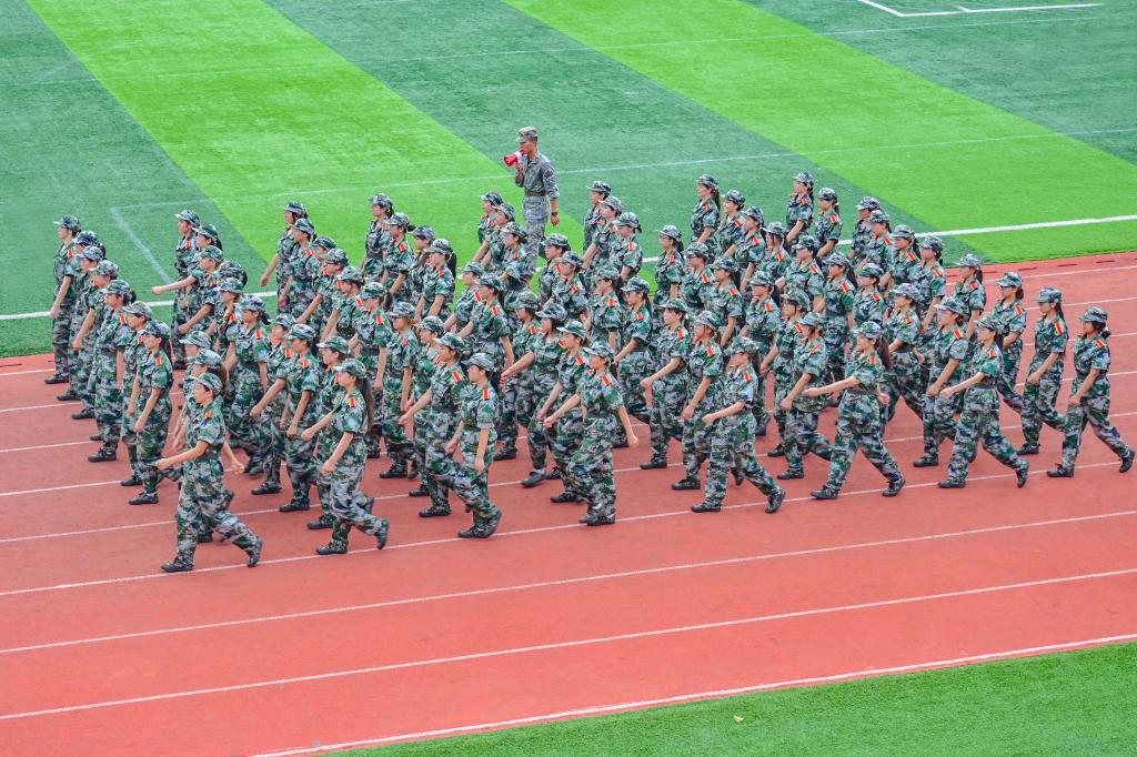 军训正浓时,场阔练姿勤。参训学子身着制式戎装,身姿挺拔如松,意气风发入场。基础队列训练中,教官示范动作标准有力,逐排巡视时严纠摆臂高低、步幅长短;学子们顶烈日咬牙坚持,零散的动作渐趋齐整,每一次抬手、每一步落脚都透着少年的坚毅,训练场处处激荡着青春的朝气与拼搏的力量