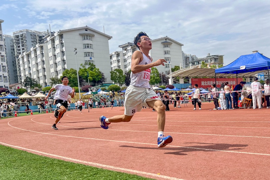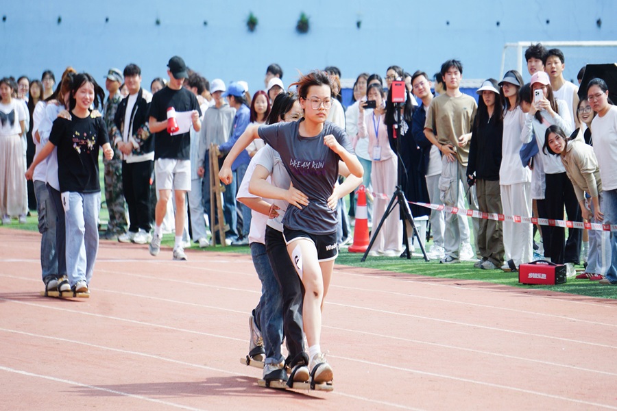民族赛场绽芳华,青春步点踏新声。4月16日,36365线路检测登录入口民族特色项目比赛在五环体育场举行。参赛选手绑紧板鞋绑带、握住竹马竹杆,木板摩擦地面,竹马蹬地向前,口号与步伐精准共振。板鞋与竹马上投下交错的光影,击地声在跑道上交织出传统与热血的交响,一次次默契的腾跃踏出民族团结的节拍