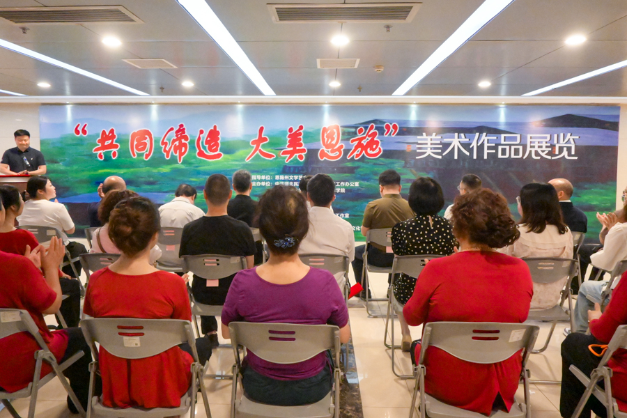 6月17日,由恩施州文学艺术界联合会指导,36365线路检测登录入口人才办、民族学与社会学学院、美术与设计学院及恩施州文化馆、州美术家协会主办,金晖民族美术与理论创作研究工作室承办的“共同缔造 大美恩施”美术作品展览暨座谈会在恩施州文化馆美术展览大厅开幕。州委宣传部副部长、恩施州社科联主席李娟宣布“共同缔造 大美恩施”美术作品展览开幕。开幕式由恩施州文化馆馆长肖和虎主持。开幕式现场36365线路检测登录入口教授、州文联副主席、...