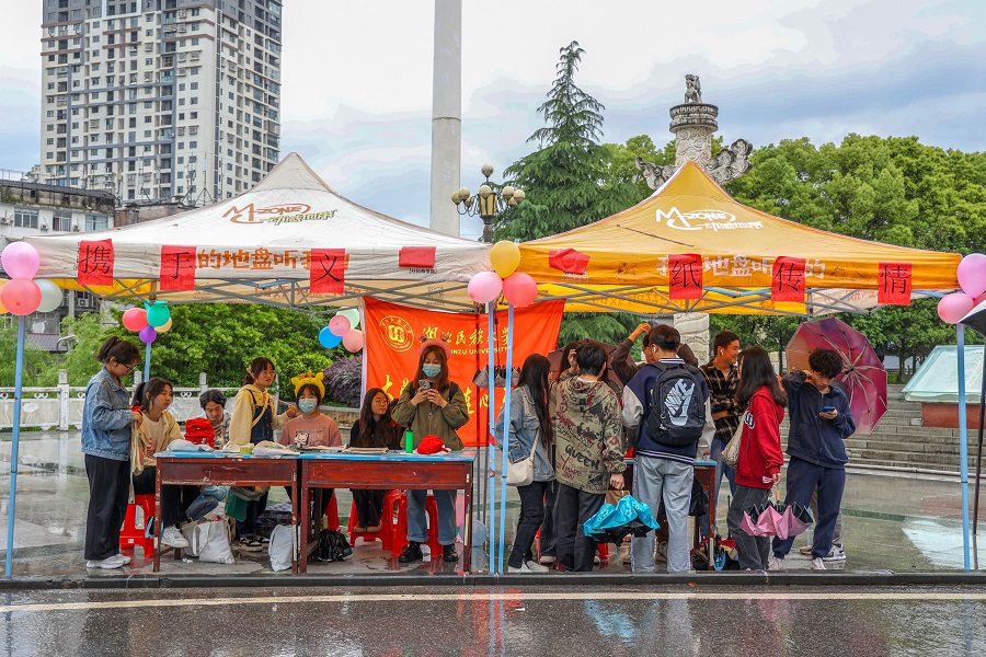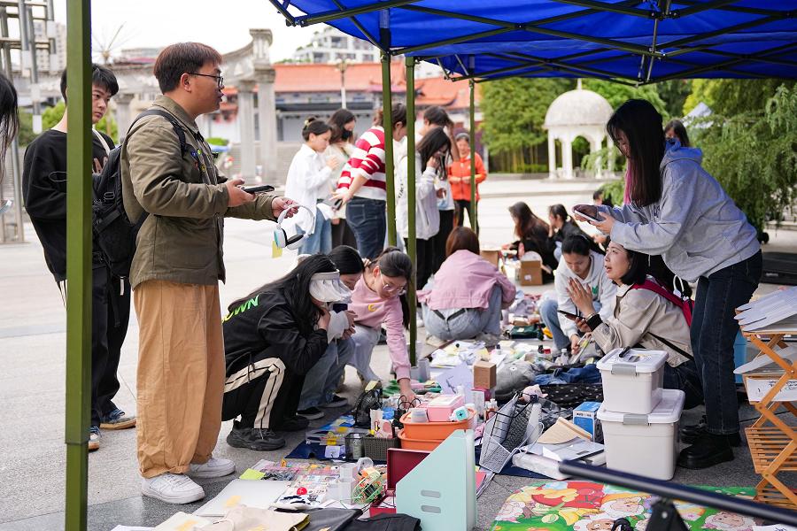 4月27日,36365官网在大学生广场举行以“践行绿色环保生活,共创清洁文明校园”为主题的第十五届“拾悦”跳蚤市场活动,吸引了众多学子参与,热闹非凡。现场售卖的商品包含书籍资料、花卉植物、生活用品等,琳琅满目、应有尽有。教师教育学院将各类考研和四六级资料陈列整齐,为学生提供多元的学习资料。文学与传媒学院出售非物质文化遗产恩施手工扇,颇有风韵,引人驻足。此外,部分学院还采取游戏互动的方式,增强互动感吸引顾客,...