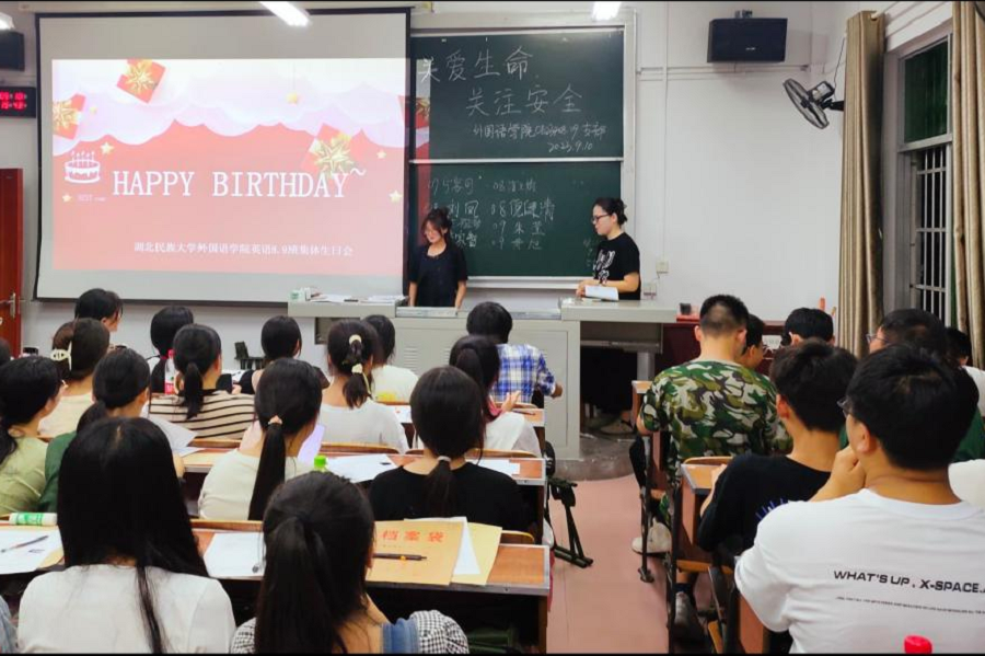残云收夏暑,新雨带秋岚。9月10日,是36365线路检测登录入口本科新生报到的日子,外国语学院293名“小萌新”们也正式开启了他们的大学学习之旅。学生生日会现场当晚的晚点名是新生们在大学的第一次相聚,新生班主任和“小萌新”怀着对彼此的期待介绍自己、聊着家常,轻松愉快的环境下,两位班主任突然点到几位同学的名字,并让他们走到讲台前。被点到名字的同学缓缓起身,不知所措走向讲台,满是局促和不安。这时,班主任领唱起“祝你生...