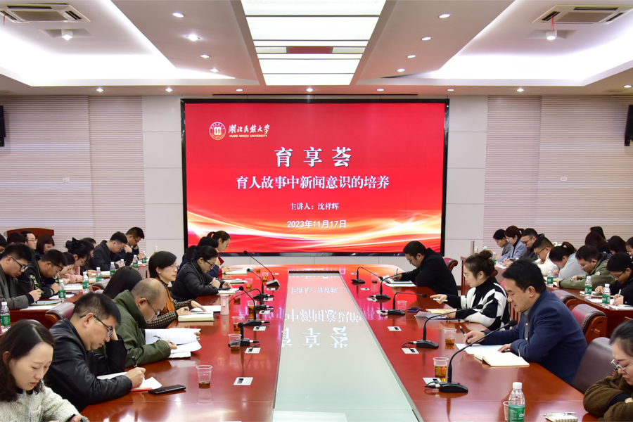 11月17日,由学生工作处主办的第九期“育享荟”学生思政特色研习活动在行政楼三号会议室举行。本期研习活动以“育人故事中新闻意识的培养”为主题,各二级学院(部)分管学生工作领导、全体辅导员、学生工作部(处)全体工作人员参加了研习活动。学生工作部(处)副部长赖申昊主持会议。活动现场本次研习活动邀请恩施日报社副社长沈祥辉作专题培训。他以学校辅导员撰写的育人故事为切入点,将工作场景的刻画与新闻意识的培养相...